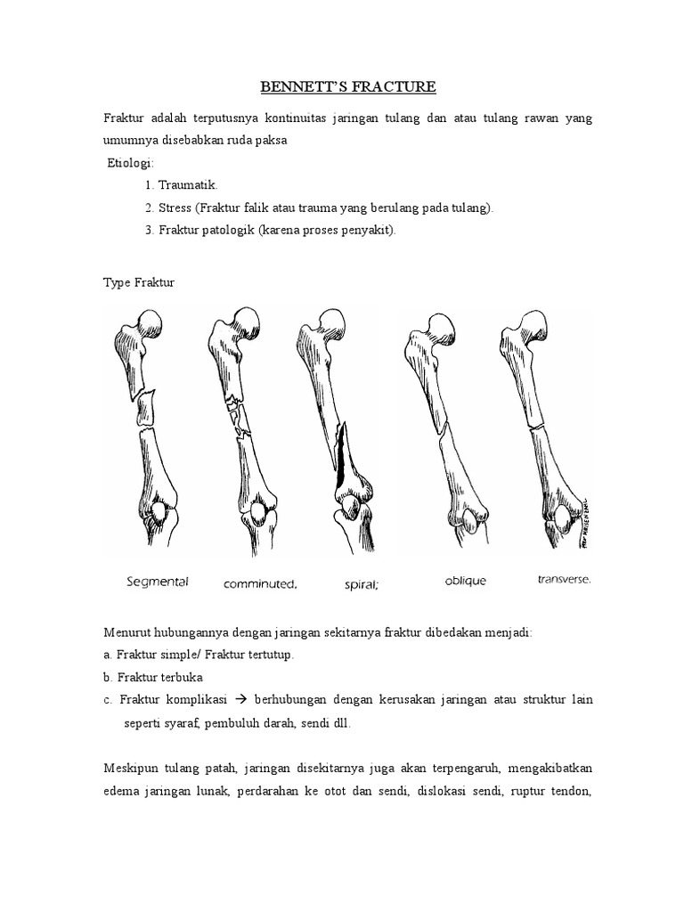 Fraktur komplikasi berhubungan dengan bennetts fracture adalah fraktur dislokasi sendi carpometakarpal i dengan garis patah oblik.